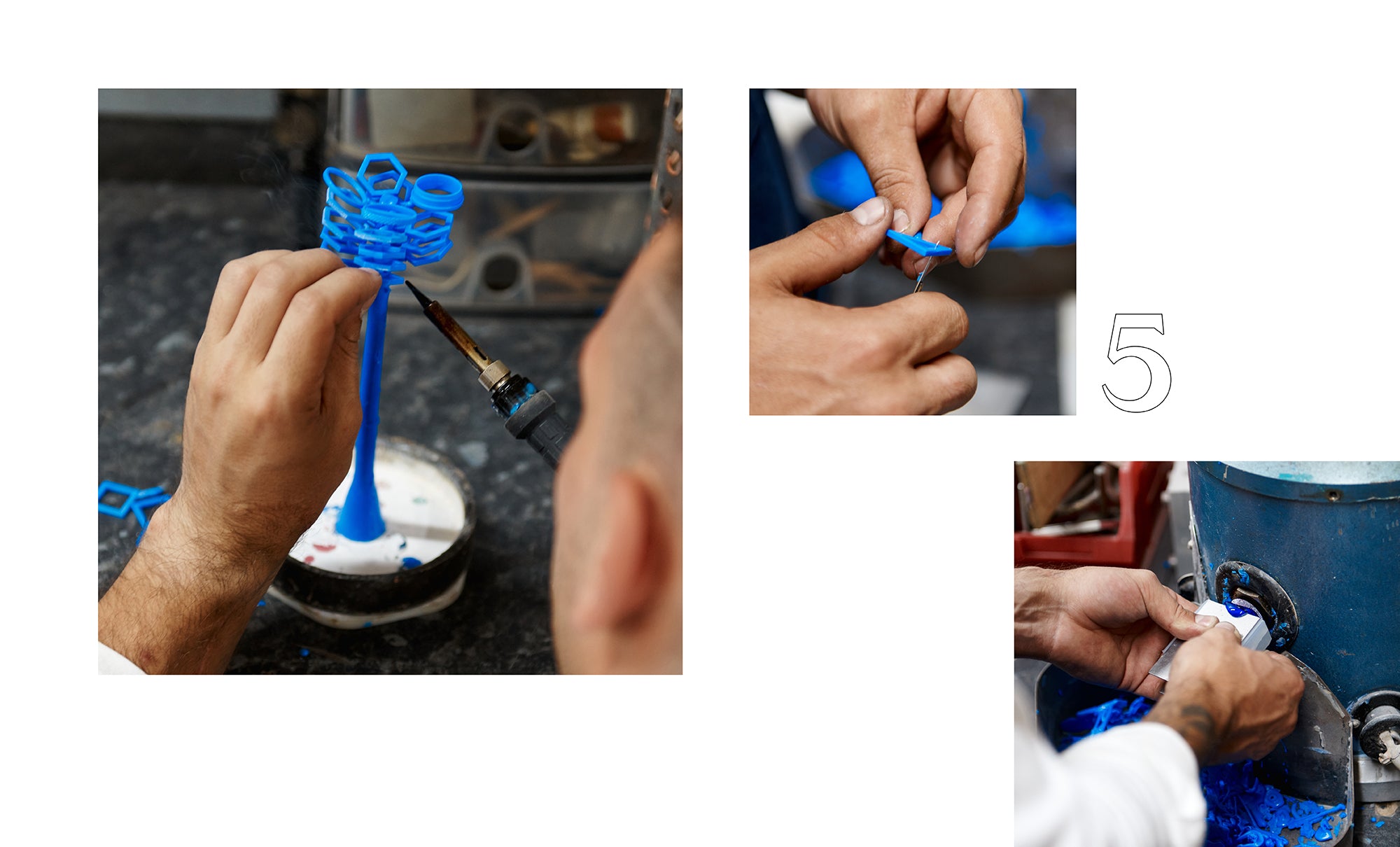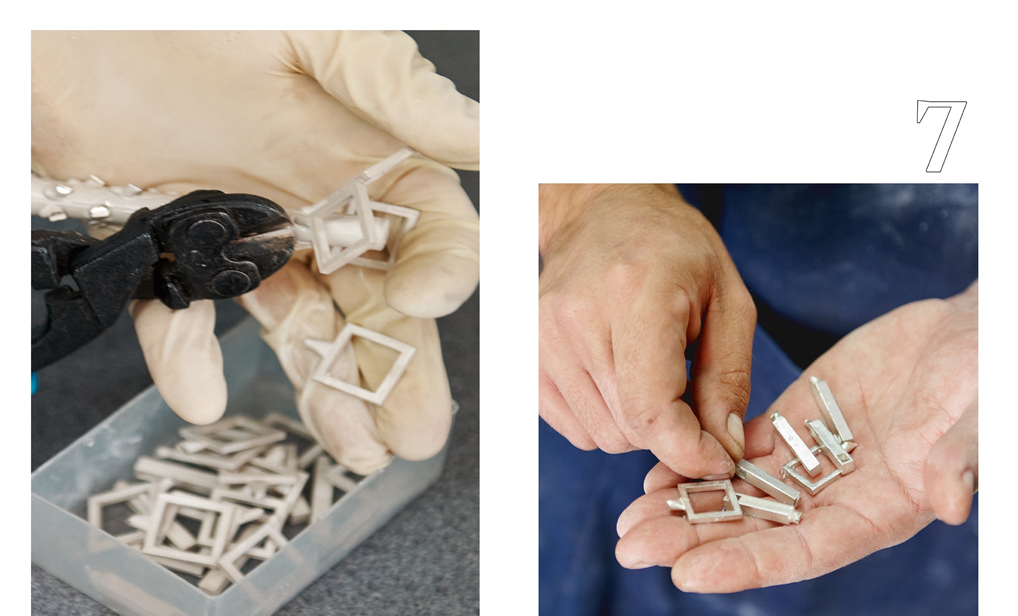 The primary finishing stage involves removing the individual items from the metal pattern clusters. The individual products are then filed down using specialist filing and sanding tools, removing any excess metal from the casting process.